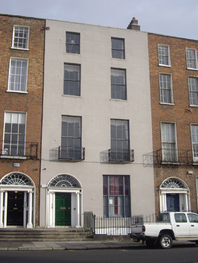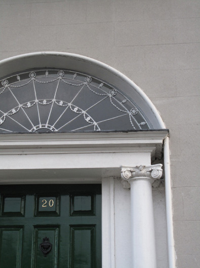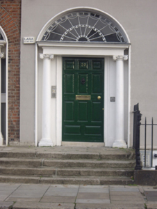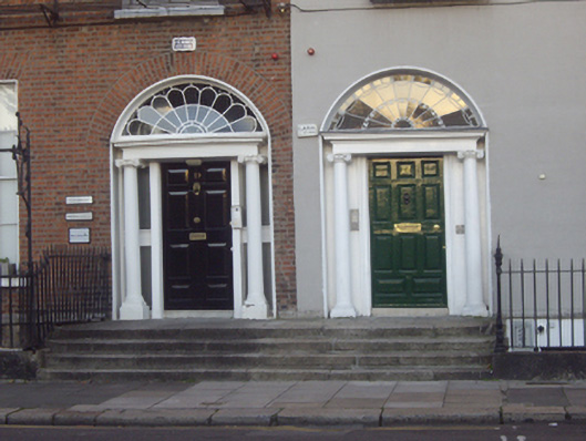 Mountjoy Square was built on lands formerly belonging to Saint Mary’s Abbey, laid out in 1790 by Luke Gardiner II and complete by 1818. Despite the rendered façade, this house retains a wealth of original fabric to the exterior and one of six similar houses built by Charles Thorpe, stuccodore, alderman and one-time Lord Mayor of Dublin. The houses all have identical doorcases, in a simplified Ionic order, with freestanding columns and forms an important component of the overall square with its subtle variations contributing to the architectural interest on this most uniform of Georgian squares. The tripartite ground floor window adds variety to the terrace. Its fine fanlight is most decorative and the entrance forms a fitting focus to the building. The retention of timber sash windows and of the ironmongery and stonework to the entrance and basement area enhances the setting.