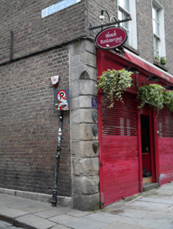 Corner-sited attached two-bay four-storey over basement former house, built c.1800, having recent timber shopfronts to front (north) and east elevations, with gable and two-bay elevation to Temple Lane. Now in use as restaurant. M-profile pitched slate roof, hipped to rear to east, hidden behind brown brick parapet with cut granite coping, and brown brick chimneystack. Brown brick walls, laid in Flemish bond to front, laid in English garden wall bond to east elevation, having chamfered cut granite quoins to ground floor. Square-headed window openings with cut granite sills, raised render reveals and replacement timber sliding sash windows. Situated on south side of Temple Essex Street East at junction with Temple Lane.