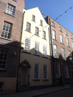 Eustace Street was laid out by 1701 on the lands formerly owned by Sir Maurice Eustace, Lord Chancellor of Ireland. A memorial of lease was registered in 1708 to Eustace's heirs for the forty-foot frontage of this building, numbered No.22 until the 1840s, and for No.16 to the north, built slightly later. In the mid-eighteenth century it was the residence of Sir Thomas Blackhall, Lord Mayor of Dublin. It was later occupied by a series of gun-makers, goldsmiths and solicitors. With its early and relatively intact Georgian interior, historic roof structure and gabled frontage, No.17 is an excellent example of its type and adds to the historic character to Temple Bar.