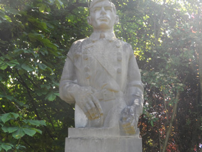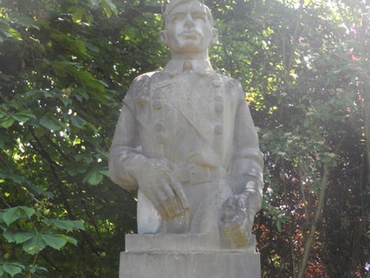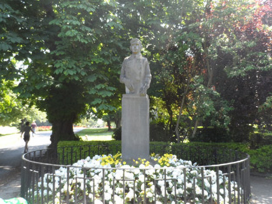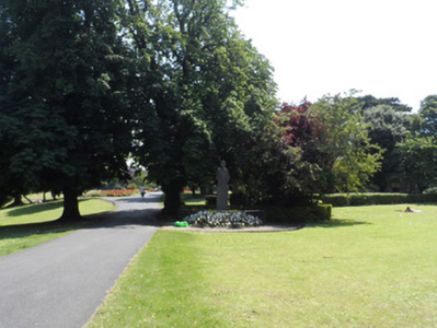 Freestanding stone memorial, dated 1943, comprises figurative sculpted three-quarter bust supported on monolithic pedestal containing memorial inscription in English on southwest face and in Irish on northeast face. Surrounded by low-level planting, cast-iron boundary and concrete flagstones. Located at entrance to Peoples' Garden.