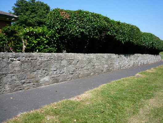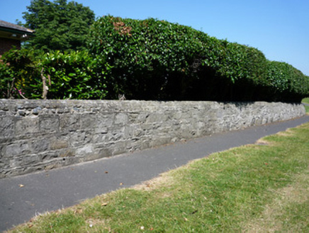Boundary wall and drainage ditch, built c.1765. Irregular plan random coursed and squared limestone rubble walls to inner perimeter, over rubble stone core and generally topped with render and inset with regular arrangement of pebbles; sloped grass banks to outer perimeter of ditch. Some sections of cast-iron railings retained. South and southeastern boundary formed by roughcast perimeter walls of farm buildings, gateway and former non-commissioned officers' quarters.