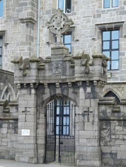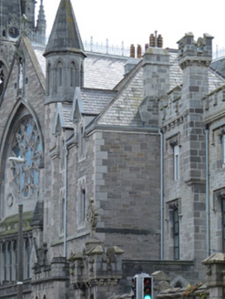 This presbytery, together with the adjacent Saint Peter’s Church, forms an important group of ecclesiastical buildings at a prominent site formed by the intersection of the North Circular and Cabra Roads. The architect is unknown but Casey (2005) suggests possibly John Bourke or James Cahill, who worked on the redesign of the adjacent church. Another contender is Jacob Owen whose crenelated coach house and stable at Dublin Castle it closely resembles. The structure was constructed in several distinct phases adding architectural interest and complexity. As a former school, replacing the school which occupied part of Saint Peter’s Church, it played an important social role in the locality.