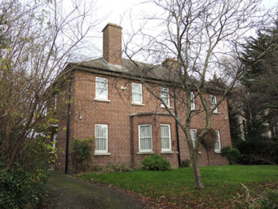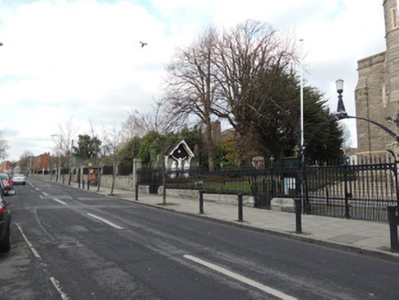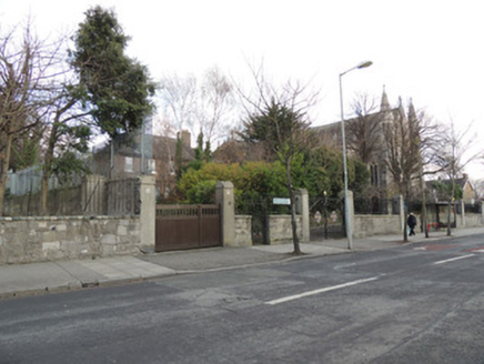 The Church of the Holy Family or Saint Gabriel was completed in 1876 facing south-west to Aughrim Street, and did not have a parochial residence or associated schools at the time following its construction. The parochial residence at 117 North Circular Road, known as Glebe House, was bought in 1896, moving to 115 North Circular Road in 1926. No.83 Aughrim Street, a three-bay three-storey late Georgian house, was also used as a presbytery in the early twentieth century after it was donated to the parish by Mr. William Burton. The new parochial house at 34 Aughrim Street was built c.1945, and parish priests have continued to live in this house since. The parochial house bears strong resemblances to the nearby nurses’ residence of Saint Bricin’s Military Hospital, built c.1950. Despite its mid-twentieth-century date, it is conservative in its appearance, with the hipped roof, diminishing windows, and canted bay window long established features typical of suburban and rural Ireland. The entrances are to the side and rear, a feature commonly found in presbyteries, perhaps to afford privacy to callers.