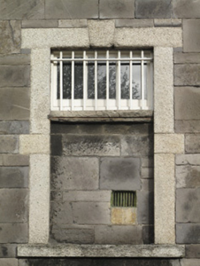 The wall enclosing the Royal Barracks to the south was constructed to designs by Francis Johnston in 1816, although this guard house is not shown on the first edition OS map and appears to have been a later addition. Well-composed, it makes a strong, formal architectural statement, with granite dressings used to good effect to enhance the calp walls. It fulfilled an important function in housing guards who controlled entry to and exit from the barracks. A cast-iron post box, inserted later, provides further contextual interest, implying an additional practical use for the guardhouse.