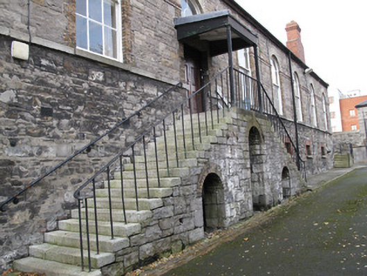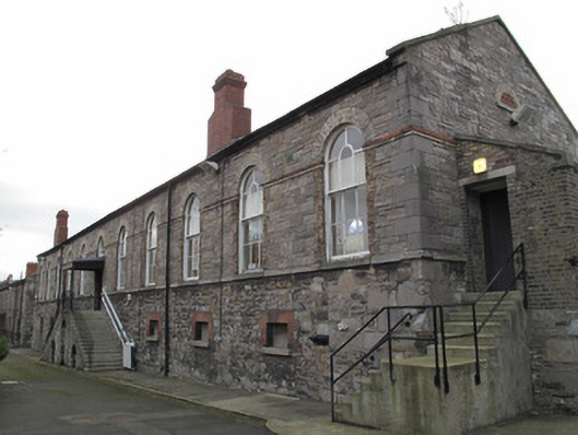 The construction of the Royal Barracks was initiated by the 2nd Duke of Ormonde at the close of the seventeenth century, and was funded by a tax on tobacco and beer. Such a large scale residential barracks was an entirely new concept, and until the departure of the Irish Army from the site in the twenty-first century, it was considered the largest and oldest occupied barracks in Europe. This fine and imposing structure of balanced proportions was constructed, along with its neighbour to the east, as a stable range. Its construction is indicative of the ongoing development and expansion of the Royal Barracks. The regularity of design and proportion can be seen in the even fenestration arrangement, the high placement of ground floor windows emblematic of the use of the building as a stable, and is complemented by effective use of polychrome brick and granite detailing, adding visual and textural interest to the façade.