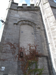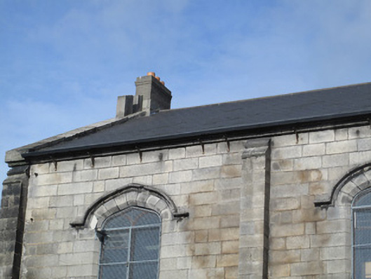 The original church on this site was constructed in 1702, with excavations which were undertaken on the site in 2008 revealing that the first burials took place in the adjacent graveyard shortly after. The current building was designed by William Farrell and erected in 1824, aided by a grant from the Board of First Fruits. A chancel and porches were added by Albert E. Murray in 1880, reversing its orientation. Saint Paul’s was deconsecrated in 1987 and has since been converted for use by the SPADE enterprise centre. The simple form and design of the building, typical of the ‘First Fruits Gothic’ style, is enhanced by granite detailing such as crenellations, finials and buttresses, which are unusual given that these buildings are generally unadorned, and give an impression of prestige. The stone spire which originally surmounted the tower, was a desirable but expensive additional feature to these buildings, indicating that the congregation must have been quite wealthy. It was removed in 1958. Now adapted for different use, none of the interiors survive, however, this unusual building adds an interesting ecclesiastical focal point to North King Street.