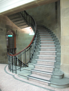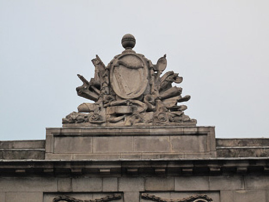 One of the most instantly recognisable structures in the country, the Four Courts makes a striking impression on the Dublin skyline, due predominantly to its remarkable cylindrical drum and dome. Begun as a Public Records Office by Thomas Cooley in 1776, it was later taken over by James Gandon, when the decision was taken, in 1784, to house the Four Courts in the building. Gandon faced difficulties in marrying the new purpose of the building with the construction work which had already taken place, putting certain limitations on the scope of his design. However, he succeeded in drawing the component parts together, and a strong sense of symmetry is manifest in flanking wings, central block, pediment and particularly the dome, and contributes to the power and status which emanates from the building. Portland stone is employed to good effect to enliven and enhance the granite façade, creating an aesthetically pleasing impression. Additionally, acroteria statuary representing those values and personages which might influence the workings of the legal system, provide artistic and contextual interest to the façade. Built to house the four divisions of the judicial system in Ireland, namely, Chancery, King's Bench, Exchequer, and Common Pleas, the Four Courts is a socially and historically significant structure not least due to the part it played in the War of Independence and Civil War. It retains some of its original fabric, but was significantly destroyed during those wars and subsequently rebuilt by T.J. Byrne, with the interiors entirely rebuilt. Originally, for example, the inner ceiling of the dome was richly decorated, with figure representing Justice, Wisdom, Mercy, Law, Liberty, Eloquence, Prudence and Punishment, by Edward Smyth. The repairs are of technological interest, with steel and concrete employed in the repair of the drum. Like the Custom House, the GPO and much of O'Connell Street, post-Independence repairs and rebuilding blend with classical architecture, documenting the history of the city and the state. Although it is sited at a bend in the river, which inhibits long vistas towards the building, the Four Courts possesses a striking silhouette which is testament to James Gandon's vision and skill. It is a striking example of public architecture in Ireland.
