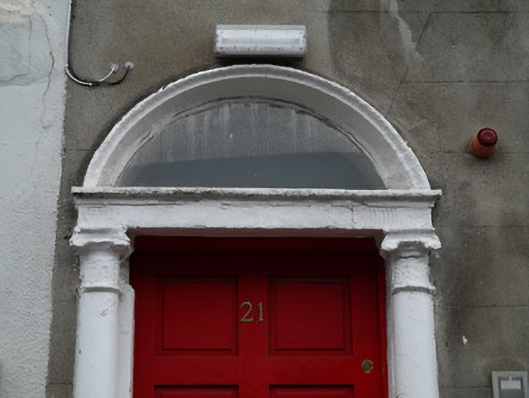 Pair of mid-terrace two-bay three-storey over basement houses, built c.1800, now in use as flats. M-profile hipped roof, hidden behind parapet to front (south) elevation with cut granite coping. Brown brick stepped chimneystacks having clay chimneypots. Red brick walls laid in Flemish bond to no.20 having painted cut stone plinth course over rendered walls to basement level, rendered walls to rear. Lined-and-ruled rendered walls to no.21 having painted cut stone plinth course to ground level, brown brick walls laid in English garden wall bond to rear. Square-headed window openings having painted stone sills. Replacement uPVC windows. Round-headed stair window to rear of no.20. Round-headed door openings, each having painted surround with engaged Ionic columns supporting frieze and cornice. Plain fanlights, and timber panelled door. Cut granite steps to entrance platforms having metal railings and cast-iron corner post to no.20. Basement areas enclosed from pavement level by cut granite plinth wall with metal railings and gate. Access from pavement level to basement areas by recent external concrete stairs.