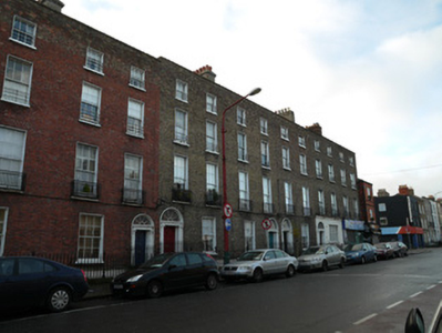 Group of three terraced two-bay four-storey over basement former houses, built c.1800, having three-storey flat-roofed returns to rear. Now in use as flats. Hipped M-profile roofs hidden behind continuous parapet to front (north) elevation, having cut granite coping. Rendered chimneystacks. Brown brick walls laid in Flemish bond. Cut granite plinth course over rendered walls to basement areas. Rendered walls to rear. Square-headed window openings having painted cut stone sills and patent reveals. Cast-iron balconettes to first floor windows. Timber sash windows, three-over-three pane to third floor front elevation, bipartite windows with two-over-two panes to basement, six-over-six pane to other front openings. Mixed two-over-two pane timber sash windows and replacement windows to rear elevation. Round-headed stair windows to rear elevation, having multi-pane timber sash windows. Round-arched door openings having painted masonry surrounds, engaged Ionic columns supporting fluted frieze and cornice. Ornate fanlights to no.60 and no.61, replacement fanlight to no.62. Timber panelled doors. Cut granite steps to entrance platforms having cast-iron railings and corner posts on granite retaining walls. Basement areas enclosed from pavement by cut granite plinth wall with cast-iron railings. Shared car park to rear having painted metal gates within rendered boundary wall.