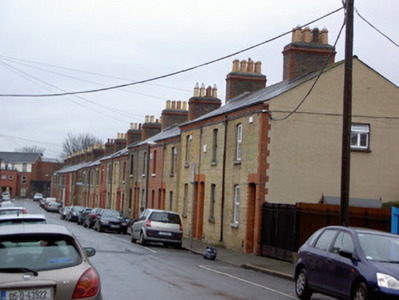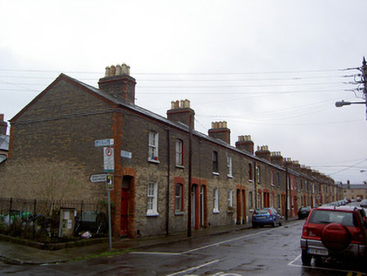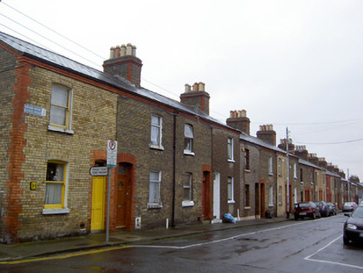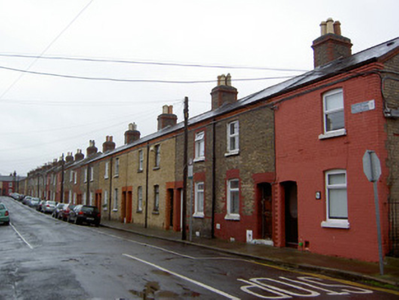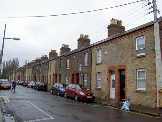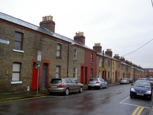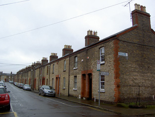 The Dublin Artisan Dwellings Company built some 3,600 dwellings since its foundation in 1876. The D.A.D.Co. initially built multi-storey blocks of flats, and from 1880, built rows of single- and two-storey cottages arranged in streets, cul-de-sacs and squares, developing many areas including the area west of Stoneybatter. The company architect, Charles Ashworth, designed five house types and these terraces are excellent examples of the four roomed two-storey type. Development commenced in this part of Stoneybatter in 1895 and by 1908 one thousand houses had been built on the former Mount Temple lands. Though some historic features have been replaced, the group retains traditional features including timber sliding sash windows, timber doors and inset bootscrapes.