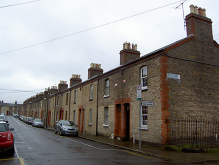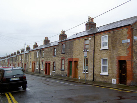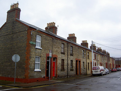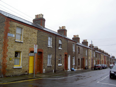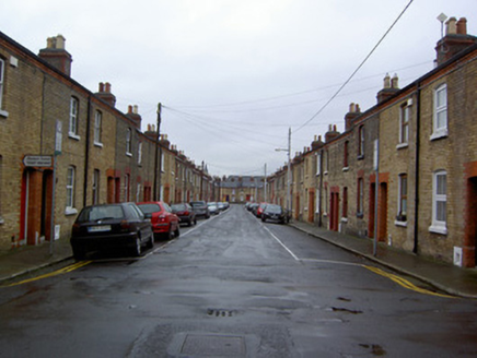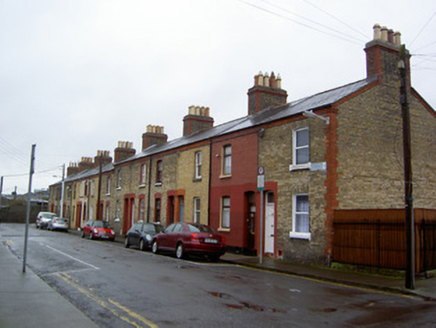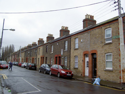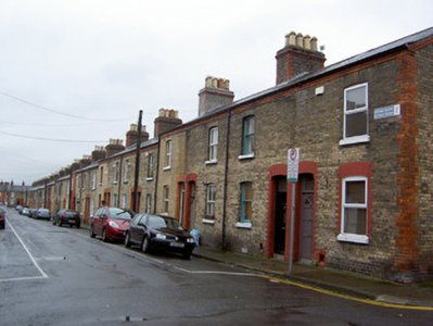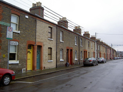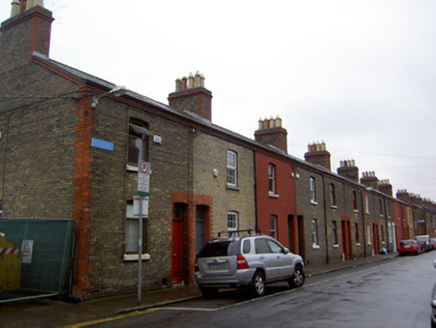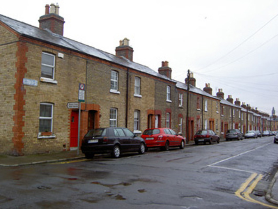 Terraces of two-bay two-storey houses, built c.1900. Pitched slate and artificial slate roofs with brick chimneystacks having clayware pots on party walls. Yellow brick walls with red brick quoins and moulded eaves courses. Inset bootscrapes flanking paired door openings. Segmental-arched window openings having cut granite sills and six-over-six timber sliding sash windows. Some window fittings replaced. Segmental-headed door openings having moulded red brick mouldings, timber doors and plain overlights. Some door fittings replaced.