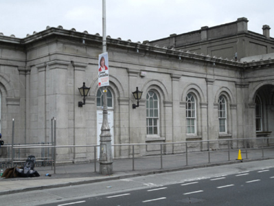 As the booking hall and restaurant, this block formed the main public component of Heuston Station and was placed at the centre of a long range of offices to the south of the train shed. The well-executed portico to the front is a typical example of a classical element employed in railway architecture, and as well as serving a practical function in providing shelter and clearly denoting the entrance, it lends gravitas to the façade. The elegant plaster detailing to the tall interior room adds artistic interest, creating an aesthetically-pleasing space, with design elements of the train shed, including round-headed arcades, repeated internally. The fabric of the building is repeated in the main façade to the east, providing a strong sense of continuity across the building. As the terminus of the GS&WR, Heuston is one of the most important railway buildings in the country. The original plan left this booking hall and other passenger facilities unconnected to the public front of the building, which was typical of Victorian railway architecture. This range, including the booking hall, dominates the streetscape at the end of Saint John’s Road West, making a strong classical contribution to the area.
