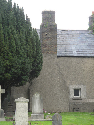 Detached three-bay two-storey house, built c.1780, having lean-to porch to north gable. Now disused. Pitched slate roof, red brick and rendered chimneystacks, stepped rendered chimneybreast with red brick chimneystack abutting rear (west) elevation. Cast-iron rainwater goods. Roughcast rendered walls, base batter to rear. Square-headed window openings having masonry sills and rendered reveals, three-over-three pane timber sash windows to first floor to front (east) elevation, raised render reveals and timber frame windows to ground floor. Boundary wall to north, having square-headed former door opening, red brick surround, raised render reveal, replaced with window opening having masonry sill and red brick riser, now blocked.