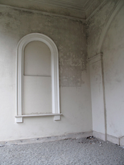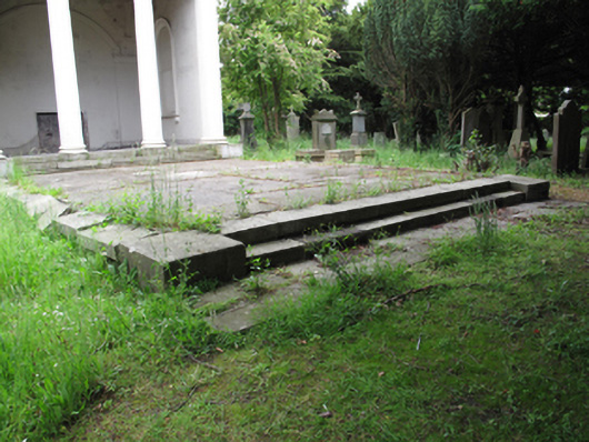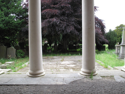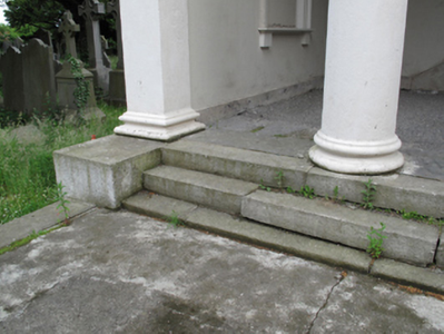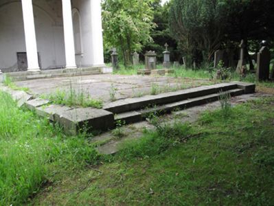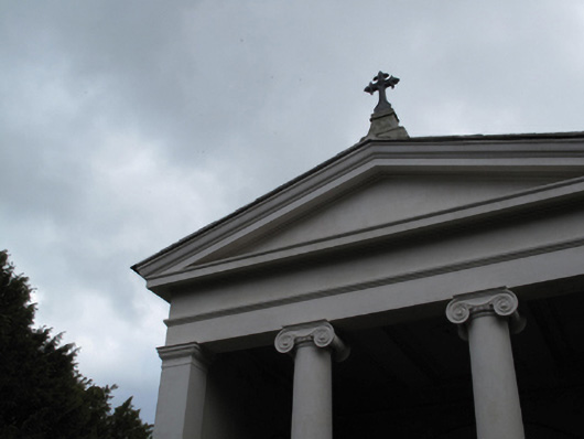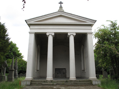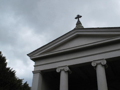 This pedimented open chapel, built to designs by Patrick Byrne, remains the centre-piece of Goldenbridge Cemetery, an early nineteenth-century garden cemetery. Drawing from classical references, the elegantly composed façades create a pleasing architectural composition. Despite suffering loss of fabric, the chapel, which recently underwent refurbishment works retains much noteworthy fabric. Located to the centre of the cemetery, addressing a raised granite-edged podium, the building is enhanced by the surrounding mature landscaping.