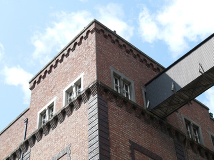 This malt store was designed by Robert Worthington for the Guinness Brewery. It had a capacity of one million bushels of malt, held in 126 octagonal bins set on a concrete base supported on cast-iron columns. The narrow-gauge railway ran through the ground floor on several tracks, to allow for the discharge of malt directly from the bins into the trains below. Its brick and granite detailing provide articulation and proportion to its largely blind elevations. Unlike the later Market Street Storehouse, the walls here are loadbearing, and together the two buildings are indicative of technological developments in engineering. Historic fabric remains in windows openings, brick and stonework. Historic maps show part of the former Grand Canal basin on the site, which allowed boats to discharge their cargo directly into the building's elevators, or into the railway trucks. It has an imposing presence in the surrounding urban landscape due to its size and scale, and the use of machicolation effect corbel courses adds interest and texture. The Guinness Brewery was founded in 1759 by Arthur Guinness. It first developed on the south side of Saint James's Gate and later expanded on all sides, becoming at one point the largest brewery in the world, reflected in the scale of its storage and brewing buildings.