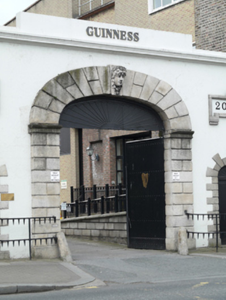 St James' Gate, the main entrance gate to the Guinness Brewery replaced an earlier gate in the nineteenth century. Its fine use of materials and detailing is befitting of the entrance to the largest city centre industrial site. The flanking three-storey buildings frame and emphasise the entrance. Skilled stonemasonry is evident in the granite detailing. Historic fabric is apparent in the gates and decorative window surrounds of the front elevation. The Guinness Brewery was founded in 1759 on this site, by Arthur Guinness, in brewery buildings purchased from Mark Rainsford. It first developed on the south side of James Street and later expanded in all directions.