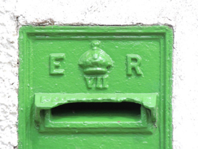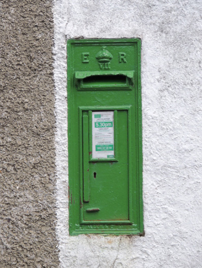 Manufactured by W.T. Allen & Co. of London, this post box is a notable example of early twentieth-century mass-produced cast-iron. The royal cipher and crown motif are of special interest, as a physical reminder of the relationship between Ireland and the British Empire prior to Independence. Many pre-Independence post boxes were simply repainted green and retained this royal insignia, those with that of Edward VII being quite rare given the shortness of his reign (1901-1910). Still in use today, it is a testament to the durability of early letter box design and manufacture.