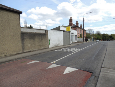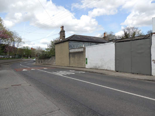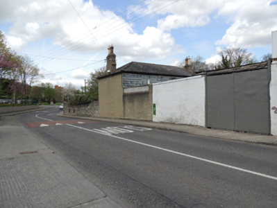 Rectangular cast-iron post box erected c.1905, having single aperture and side-hung door. Royal monogram and crown of Edward VII over aperture. Set into roughcast rendered wall.