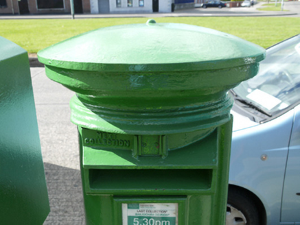 Located on a commercial stretch of streetscape in a residential suburban area, this attractive piece of street furniture remains in active use and provides an interesting contrast to the later box beside it. A notable example of quality mass-produced cast-iron work produced in the mid- to late-twentieth century, the form references earlier designs, but the lack of dentillation or royal insignia indicates its later manufacture. Pillar boxes were sited in busy urban areas with large volumes of post, where wall boxes would have provided insufficient capacity.