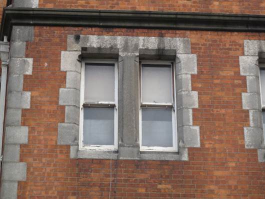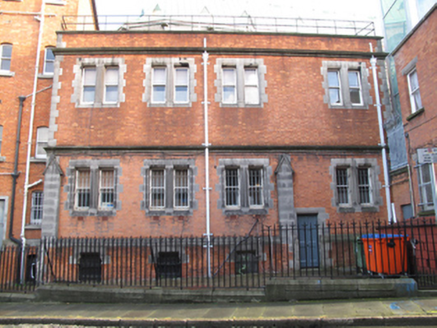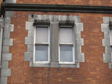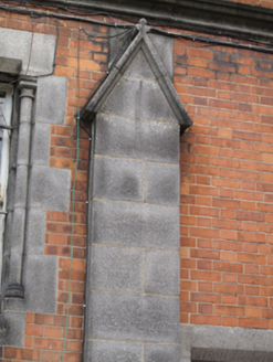 Attached four-bay two-storey over raised basement priory, built c.1880. Flat roof, hidden behind red brick parapet with carved granite coping and cast-iron railings, carved granite cornice to base of parapet, and cast-iron rainwater goods. Red brick walls with granite quoins, carved cornice over ground floor, and pointed pilaster buttresses having trefoilated capping to front (west) elevation. Red brick plinth course with carved granite capping. Bipartite square-headed window openings, with chamfered granite surrounds and mullions, carved colonnettes to ground floor windows, and one-over-one pane timber sash windows. Steel bars to ground floor windows. Shouldered square-headed window openings to basement, having chamfered granite lintels, timber framed windows and wrought-iron bars. Square-headed door opening to front, with chamfered granite surround and timber panelled door. Cast- and wrought-iron railings set on cut granite plinth to site boundary.