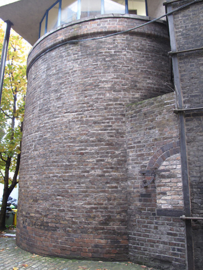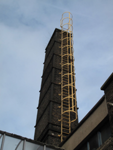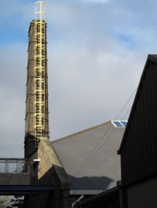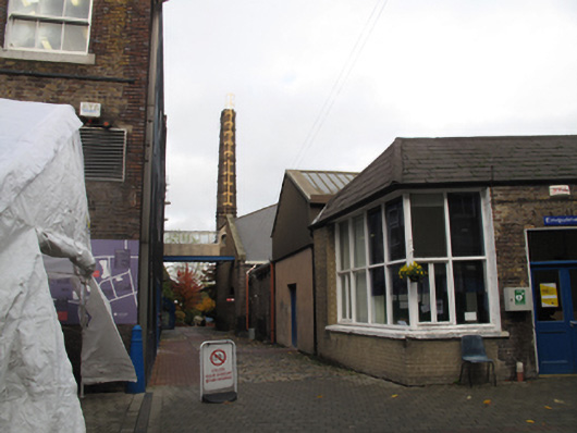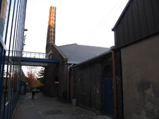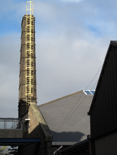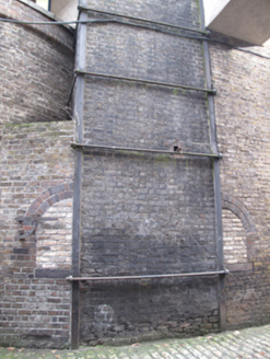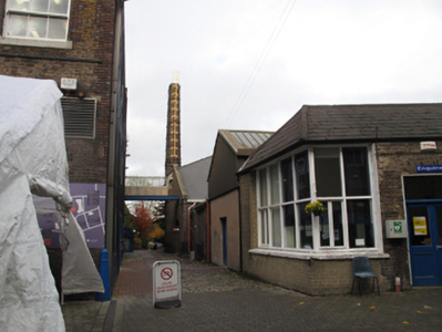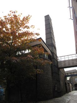 This building was part of Power's Distillery, which was one of the largest whiskey producers in the world at that time. Substantially rebuilt in 1871, the distillery produced about 900,000 gallons annually in the late nineteenth century. The processed grain was transferred in chutes from the granary to this building, which incorporated the meal loft and brewing house. One of the later additions to the distillery complex, its construction is indicative of the increasing capacity and productivity of the company. The use of polychrome brick places the building within a late nineteenth-century context. The square-profile chimneystack is a focal point on the landscape. The retention of a beam engine adds technical and contextual interest. It is an important reminder of the prominence of brewing and distilling industries in this part of the city.