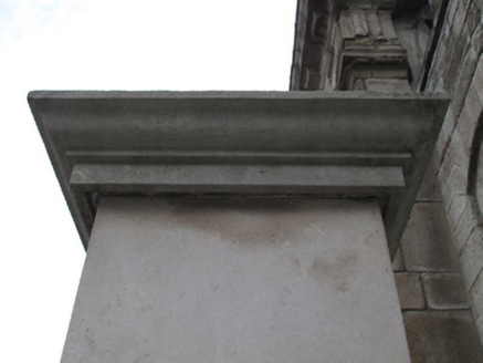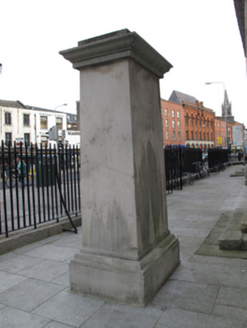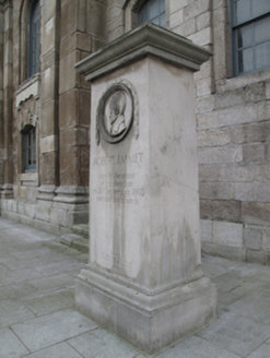 Freestanding rectangular-profile carved limestone monument, dated 1978. Limestone shaft with render cornice. Carved roundel having profile of Robert Emmet in bas-relief, draped garland over. Inscription to front.