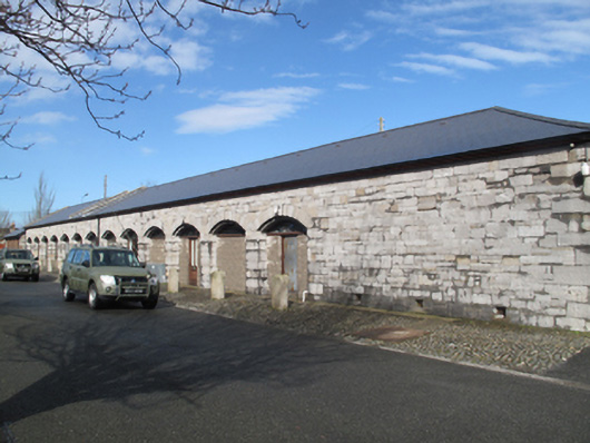 Portobello Barracks was constructed at the beginning of the nineteenth century as a cavalry barracks. It was taken over by Irish troops in 1922, and became the Headquarters of the National Army, under the leadership of Michael Collins. In 1952, it was renamed after Cathal Brugha, Chief of Staff of the Irish Republican Army during the War of Independence, and Minister for Defence in the first Dáil. The form and scale of this well-composed building make it a striking addition to the barracks complex. The execution of the arcaded facades attests to the skill and artisanship of stone masons involved in its construction, and lends a pleasing regularity to the building. As the former gun-carriage store, this building served an important practical function.