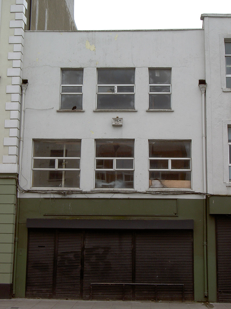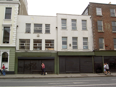 Attached three-bay three-storey former house, built c. 1695, with full-height gabled closet return. Recent full-width shopfront to ground floor. Now disused. Pitched roof with ridge set perpendicular to street, having rendered parapet and cast-iron rainwater goods. Rendered walls. Square-headed window openings with concrete sills and replacement windows. Metal roller shutter to shopfront.