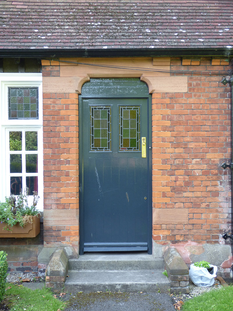Detached two-bay single-storey irregular-plan gate lodge with dormer attic, built c. 1882. Gable-fronted bay to south end of front and rear elevations, with gabled dormer window to principal elevation and single-storey gabled return to rear. Tiled roof with two main pitches at right angles to each other, one projecting forward to cover lower and narrow entrance portion with canted south corner, and with lower gabled roof to rear. Decorative terracotta ridge tiles with finials, large red brick corbelled chimneystack with masonry coping and red clay pots, painted timber bargeboards having foliate and rosette carvings, overhanging eaves with exposed rafter-tails, terracotta corbels to main elevation projection, and eaves-mounted cast-iron gutters and box downpipes. Red brick walling laid in English garden wall bond over shallow projecting granite plinth course, with terracotta fish-scale tiles to gable apexes projecting over painted timber dentillated course on scrolled timber console brackets. Square-headed window openings with splayed red sandstone sills and flush lintels, and timber windows with side-hung six-pane casements having leaded stained-glass fixed over-lights to largely tripartite openings, and with part-canted-bay window to south end of main elevation. Shouldered door opening with flush red sandstone lintel, rebuilt chamfered red brick reveal and timber battened door with leaded stained-glass top panels, brass furniture and timber-sheeted over-door. Two concrete steps, flanked by red brick plinths with angled sandstone copings. Located in small landscaped garden with gravel hard standings, bounded by boxed hedges, sited at southwest corner of Saint Stephen's Green park, with main elevation facing east.