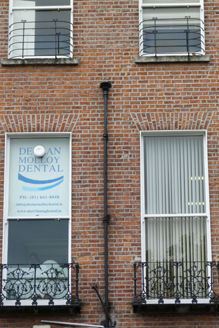 Attached three-bay four-storey former house over basement, built c. 1785, with flat-roofed two-storey and hipped roofed three-storey return to rear. Now in use as offices. Pitched slate roof to front, behind brick parapet with granite coping, and with two hipped roofs to rear, larger over western bays. Shouldered rendered chimneystack with clay pots to west party wall. Parapet gutters and cast-iron and replacement uPVC rainwater goods. Flemish bond red brick walls on granite plinth course over painted rendered walls to basement. Square-headed window openings, diminishing in height to upper floors, with rendered reveals and painted granite sills, basement window openings having carved granite block-and-start surrounds and wrought-iron grilles. Replacement bipartite six-pane timber casements to top floor front and timber sliding sash windows elsewhere, three-over-three pane to top floor rear and one-over-one pane elsewhere to front and rear elevations. Wrought-iron window-guards to second and third floors with decorative details, ornate cast-iron balconettes to first floor and ornate vignette to one ground floor window; round-headed two-over-two pane window to lower part of return. Round-headed principal doorway with rendered linings, fluted frieze and cornice on engaged Ionic columns with respond pilasters, plain fanlight, ten-panel timber door with brass furniture, and leaded stained-glass sidelights. Shared limestone platform with cast-iron boot-scrape and four granite steps. Basement area enclosed by wrought-iron railings with decorative cast-iron posts on carved granite plinth. Cast-iron coal-hole covers set in granite flags to footpath. Yard to rear.