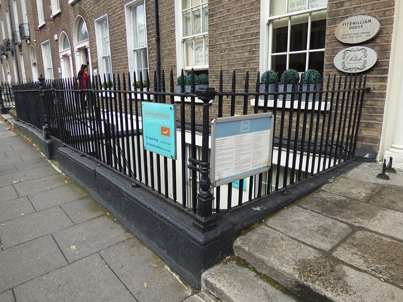 No. 6 Fitzwilliam Street Lower is a late eighteenth-century house, built as part of the original laying out of the street about 1780, in tandem with Merrion Square East and South. It is characterized by typical Georgian proportions and enhanced by surviving features, including curved a fine neo-Classical doorcase, decorative balconettes, a boot-scrape and the relatively intact granite and wrought-iron setting features that contribute to and enrich the historic streetscape. Together with the intact setting details, it forms part of a largely unified Georgian terrace lining the northwest side of Fitzwilliam Street Lower and contributes to the intact appearance of the street. The home of opera singer Margaret Burke Sheridan 1944-54.