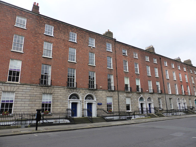 A well retained late Georgian house forming part of a largely unified row lining the south side of Mount Street Upper. It has the rusticated stone ground floor of houses on this stretch of the street, a fine Doric doorcase with a good fanlight, and ornate metalwork to its balconettes, boot-scrape and railings. The intact setting enhances the building and contributes to the intactness of the streetscape. Laid out in the 1780s and principally developed by a Mr Osburne and David Courtney, the street was built to link the newly constructed Grand Canal to the upper-class residential developments radiating from Leinster House. Built in pairs and rows over a period of thirty years, the fifty-four houses on the street were completed by 1834. Variations within the street, such as differences in parapet heights, are a telling feature of its piecemeal development, the south side notably grander than the north, boasting granite rustication across much of the ground floor. Mount Street Upper is terminated at its east end by St. Stephen's Church, transforming what is a typical and relatively modest late-Georgian street into an urban set-piece, a key vista of Georgian Dublin.