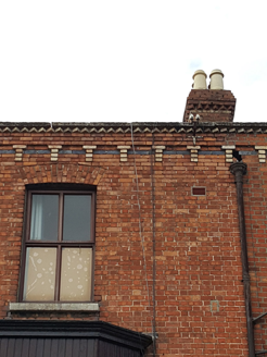 Terraced two-bay two-storey former house over raised basement, built c. 1875 as one of terrace of nine. canted-bay window to ground floor of front (south) elevation, and three-storey return to rear. Now in use as apartments. M-profile pitched roof, hipped to west, having parapet with cut granite coping and sawtooth and polychrome brick cornice, red brick chimneystacks with sawtooth detail and clay pots, and some cast-iron rainwater goods. Red brick walling to front, laid in Flemish bond, with cut granite plinth course over rusticated snecked granite basement walling; rendered to rear; and with yellow brick to rear wall of return. Slightly camber-arch window openings with granite sills, raised red brick surrounds to basement openings, having timber panelled apron and carved cornice to canted-bay, and with replacement windows. Round-headed deeply recessed doorway with stepped surround comprising moulded render surround with moulded imposts and having red brick surrounding, in turn surrounded by panelled render pilasters with inset encaustic tiles, foliate capitals, archivolt with chevron and ball-flower motif, and plain keystone; carved timber panelled doorcase to inner opening, with timber pilasters, plain overlight and sidelights and carved timber panelled door. Approached by shared flight of eleven nosed granite steps with coal-hole cover to platform. Decorative cast-iron railings with foliate motif flanking upper part of steps. Cast-iron gate having decorative finials, flanked by round-headed panels with anthemion finials and having matching railings set on cut granite plinth walls to front garden boundary.