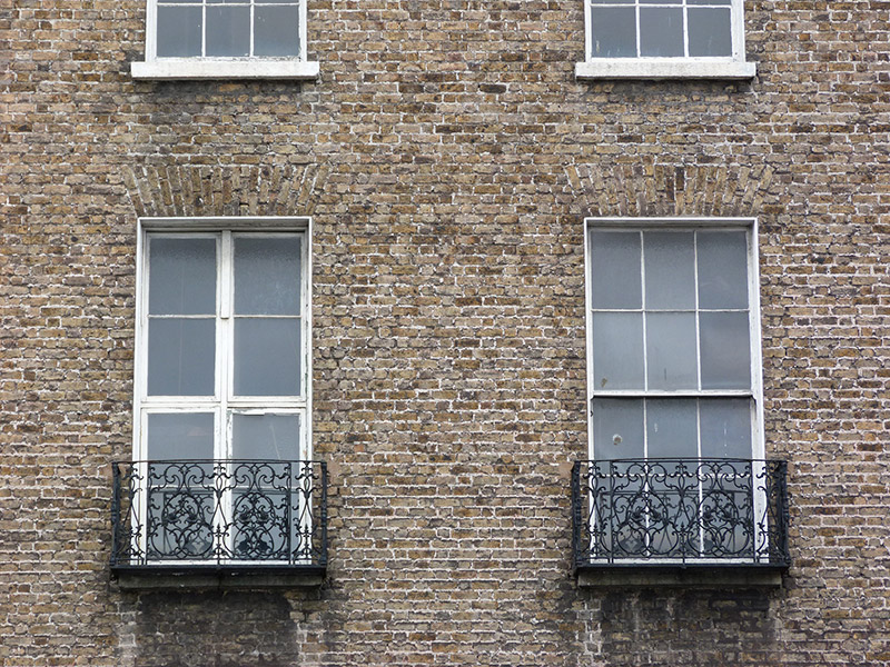 Terraced two-bay four-storey former house over basement, built c. 1830, as one of pair with No. 42, having three-storey return to rear (west) elevation. Now in use as offices. M-profile pitched roof, hipped to south, hidden behind granite parapet, having carved granite cornice. Rendered chimneystacks with clay pots. Brown brick, laid in Flemish bond, to walls to front (east) elevation, cut masonry plinth course over rendered walls to basement. Square-headed window openings, having rendered reveals and granite sills. Mixed three-over-three pane, six-over-six pane timber sliding sash and replacement windows. Cast-iron balconettes to first floor. Round-headed door opening with moulded render surround, carved stone doorcase comprising Ionic columns and entablature, leaded fanlight and timber panelled door. Nosed granite steps having cast-iron boot-scrape to platform. Cast-iron railings with spear-head finials and decorative collars on carved granite plinth wall.