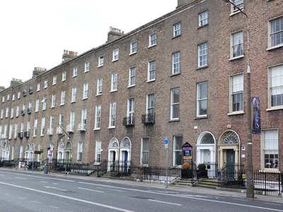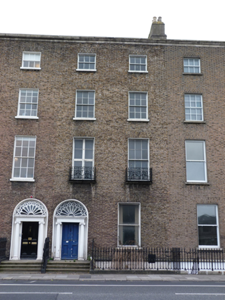 Part of a uniform terrace, this building maintains the parapet height and fenestration alignment of its neighbours, creating a sense of continuity which makes a pleasing contribution to the streetscape. It is articulated by cut granite detailing and enhanced by the retention of salient features, notably an elegant Greek Revival doorcase. Cast-ironwork lends artistic interest to the classically restrained facade. The composition as a whole projects an air of grandeur. The road leading from St. Stephen's Green to Donnybrook was originally called Suesey Street. It was renamed Leeson Street in 1728 to commemorate the Leeson brewing family, which was responsible for significant development in the area. Some early Georgian houses remain but construction predominantly dates from the late eighteenth to mid-nineteenth centuries.