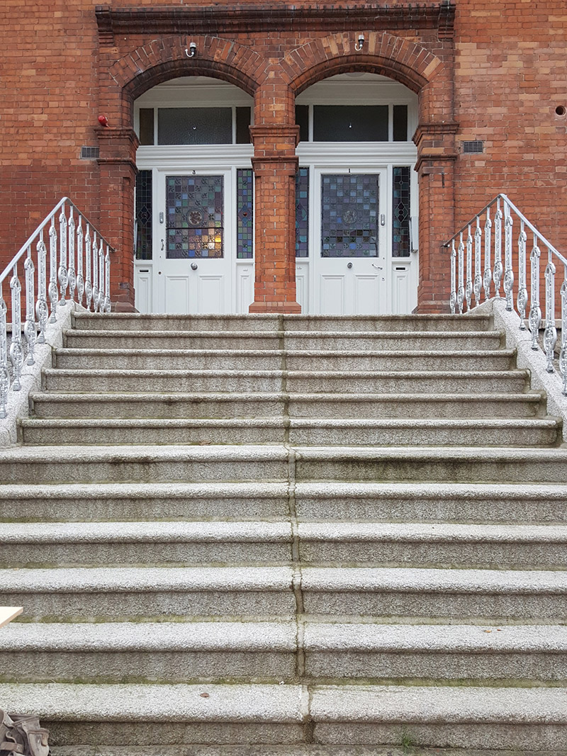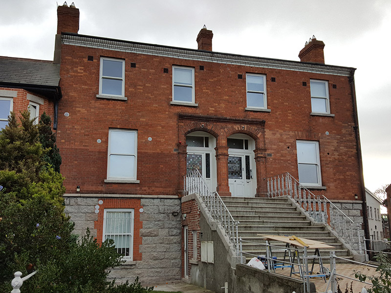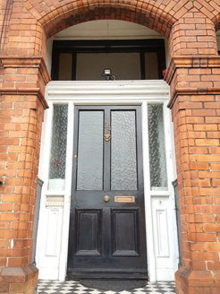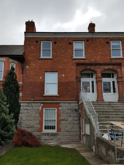 This house and its twin present an imposing façade to the streetscape, enhanced by the raised basement and rusticated stonework that give added visual weight. Moulded brick details enrich the façade and draw focus to the deeply recessed porch that is enhanced by finely crafted Arts and Crafts-style stained-glass windows and lead cames. By sharing the form, fabric and detailing of the row of twelve structures that includes Nos. 19-41 Howth Road further to the north, the building contributes to the architectural cohesiveness of the streetscape. It is typical of contemporary well-designed suburban residential housing built around Dublin at the beginning of the twentieth century. The suburban areas north of the city centre were slower to develop than their southern counterparts, with areas such as Clontarf only becoming popular for middle-class residential areas in the latter decades of the nineteenth century.