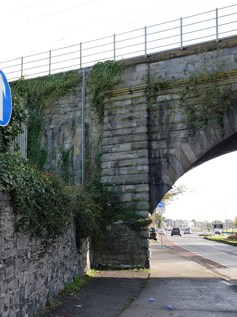 An accomplished piece of bridge engineering constructed by the Dublin and Drogheda Railway Company. The combination of rock-faced limestone and dressed granite provides visual and textural interest what is essentially a functional structure. The skewed arching allows the bridge to span the Clontarf Road at an oblique angle. Such arches require precise workmanship and display the skill and artisanship of masons employed by the railway company. The railway line was laid in the mid-nineteenth century and still carries rail traffic, its continued use attesting to the quality of engineering employed in its construction.