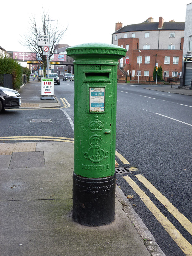 This high-quality piece of street furniture is illustrative of the mass-produced cast-ironwork created by the McDowall Steven & Co. foundry. The royal insignia of Edward VII date the postbox to the early twentieth century and the end of the era of British colonial administration. The detailing on the box, including, lettering and classical motifs add an artistic flourish to this utilitarian feature. This postbox constitutes a working, functional component of Dublin's postal heritage, adding to the overall character of the streetscape.