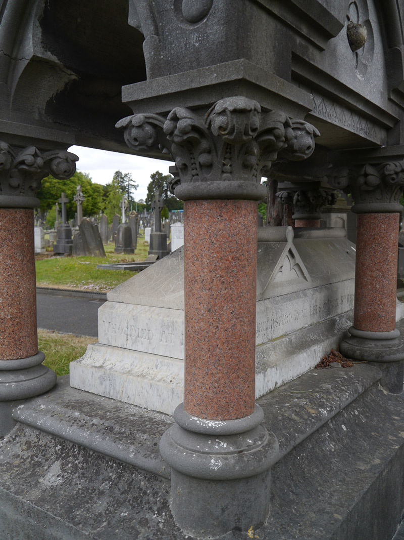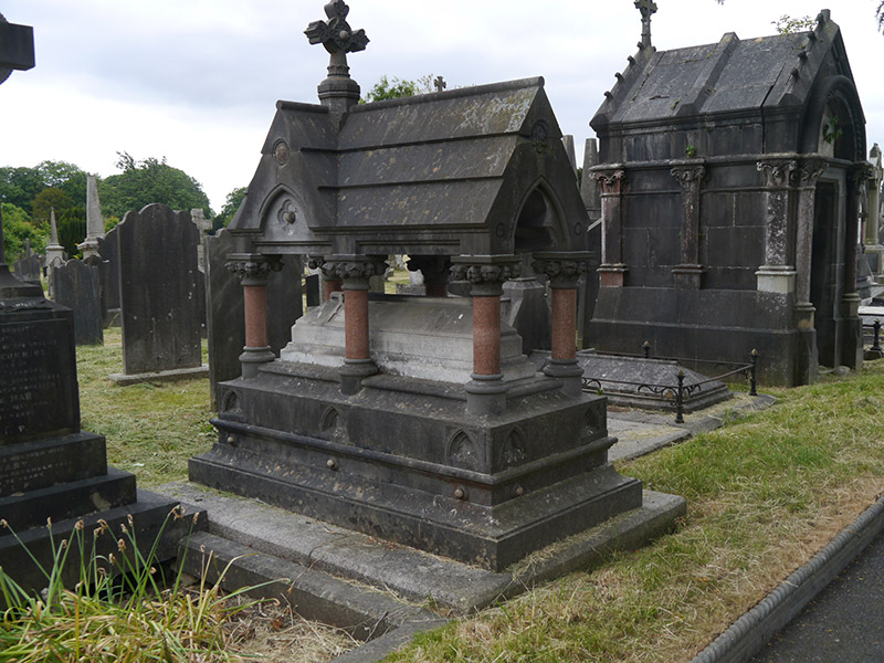 A finely detailed funerary monument in the High Gothic style, exhibiting high-quality craftsmanship in limestone and marble, and having particularly delicate incised carving along the canopy base. It is reflective of nineteenth-century taste and craftsmanship and its status is reflected in its prominent location along the main north-south axial path, just south of the O’Connell Circle. It is one of a number of notable monuments of notable architectural quality and craftsmanship within Glasnevin Cemetery. Originally known as Prospect Cemetery, this burial ground was opened in 1832 following a successful campaign by Daniel O'Connell for the establishment of a civic, non-denominational cemetery. It holds the graves and memorials of over one million people, including many notable citizens.