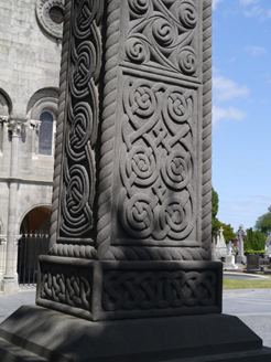 A richly carved Celtic cross funerary monument, erected in memory of Bishop Patrick Duggan (1813-96). Carved in limestone, the monument is of high craft and artistic value. It is a good example of the Celtic-Revival style that grew in popularity during the nineteenth century in the context of developing scholarship and nationalist sentiment. It terminates a row of high-quality memorials along the south perimeter of Glasnevin Cemetery, adjacent to the mausoleum of Cardinal McCabe, lifelong friend of Duggan. Duggan was ordained in 1841 and nominated Bishop of Clonfert in 1871. He was sympathetic to the aims of the Land League and Home Rule and was brought to trial, along with several other clerics, following a charge of undue influence on the results of the County Galway by-election of 1872, won by Home Rule candidate John Nolan, later overturned.