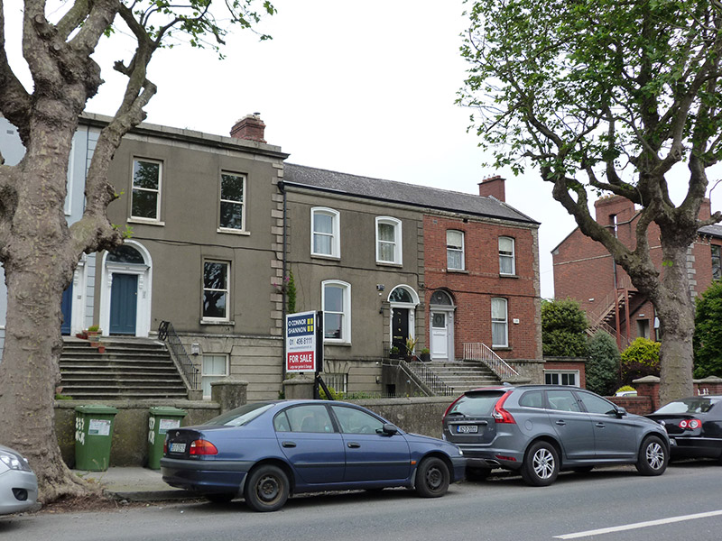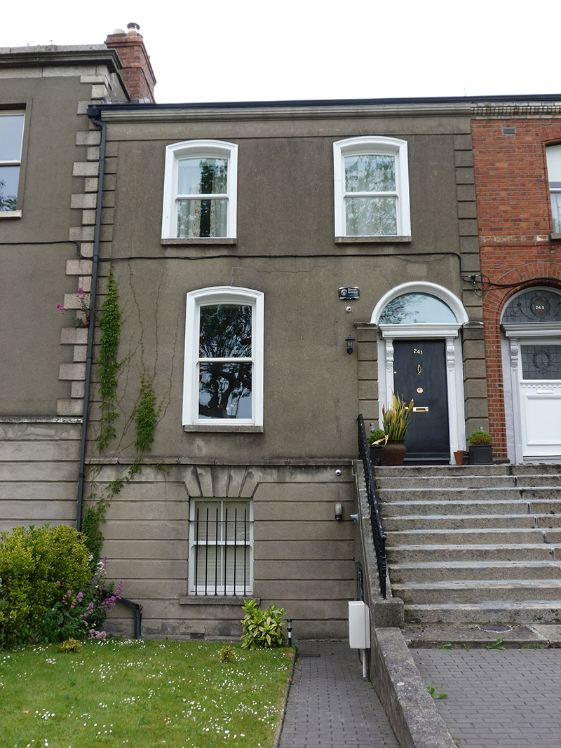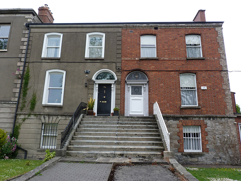 This well-built house is part of a pair of late nineteenth-century houses with similar parapet heights and fenestration patterns. The use of both smooth and channelled render adds visual and textural interest to the facade. Craftsmanship is evident in the design of the cast-iron handrail and gate which provide a sense of enclosure from the busy road. The North Circular Road was laid out in the 1780s to create a convenient approach to the city. It developed slowly over the following century with little development west of Phibsborough till the 1870s.