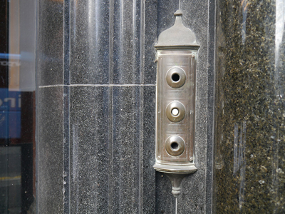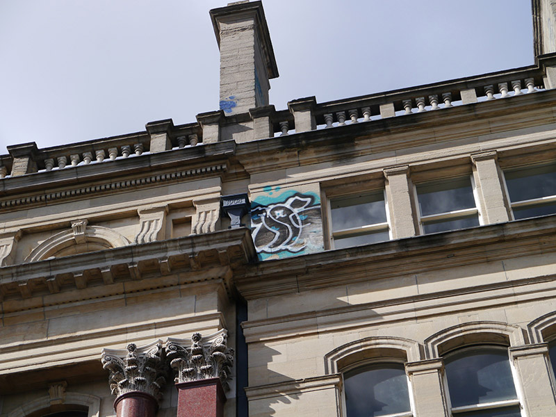 Attached three-bay four-storey former bank with dormer attic, dated 1904, having Giant Order engaged Corinthian columns to middle floors, arcaded ground floor, and extensive flat-roof abutments to rear (west). Now in retail use. Pitched roof, with three dormers to front, gable-fronted north end bay to rear (west), concealed behind balustraded parapet over dentillated crown cornice. Ashlar limestone chimneystacks to north and south party walls to east, with moulded cornices and copings, and red and yellow clay pots; similar chimneystack to centre of south elevation. Concealed gutters, with original cast-iron hoppers having date 1904, and recessed box-downpipes to each side of front elevation. Ashlar sandstone walling to front, yellow to upper floors, red to ground floor over polished black granite plinth, with horizontal channelling beneath impost level, and dentillated cornice. Red brick walling visible to upper part of south elevation, with flush limestone stringcourses and quoins. Giant Order columns and flanking pilasters are red granite, with yellow sandstone Corinthian capitals and stops over shared red sandstone pedestals, carrying yellow sandstone entablature with modillioned cornice. Decorative metal balconettes to first floor openings, between pedestals. Square-headed openings to first floor with moulded architraves and pediments, segmental to outer bays and triangular to middle. Camber-arch openings to second floor, with moulded architraves, scrolled keystones and projecting moulded sills on brackets, with continuous moulded sill course having moulded stringcourse below. Semi-circular openings to attic floor, with moulded archivolts and scrolled keystones, with plainly detailed diminutive square-headed openings to outer sides, openings flanked by scrolled consoles rising from modillioned cornice and supporting parapet entablature. Windows are bipartite side-hung timber casements with single overlights, single-pane fixed casements to top floor, north end opening blind. Ground floor arcade openings have channelled reveals, moulded archivolts and keystones, recessed recent glazed door openings, and plain fanlights set in ashlar sandstone surrounds above moulded transoms. Narrow square-headed window opening to north end, with vent inserted and metal bar fixed. North bay opening fronted by segmental-headed polished black granite moulded doorcase, flanked by engaged Scamozzian-Ionic pilasters, with matching freestanding columns over pedestals, supporting dentillated open-topped pediment with central pedestal. Opening now fully glazed, with original brass doorbell retained and accessed by three bull-nosed steps to street. Interior largely modernized for retail use, and retained features include decorative ceiling rose and cornices, gilded Corinthian capitals and red marble columns over black pedestals and green bases, carved timber fire surround, and irregular stairwell with decorative cast and wrought-iron balusters and carved timber hand-rail.