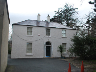 Detached three-bay two-storey presbytery, occupied 1901, on a rectangular plan with three-bay two-storey rear (west) elevation. Undergoing "restoration", 2012-3. Replacement hipped slate roof with clay ridge tiles, paired rendered central chimney stacks having stepped capping supporting terracotta pots, and cast-iron rainwater goods on rendered eaves retaining cast-iron downpipe. Roughcast walls bellcast on rendered plinth. Segmental-headed central door opening with cut-granite threshold, timber doorcase with panelled pilasters supporting lead-covered cornice on "Acanthus"-detailed fluted consoles, and moulded rendered surround framing timber panelled door having overlight. Square-headed window openings including square-headed window openings to rear (west) elevation with cut-granite sills, and concealed yellow brick block-and-start surrounds framing two-over-two timber sash windows with two-over-two timber sash windows to rear (west) elevation centred on one-over-one timber sash window (first floor). Interior including (ground floor): central hall retaining carved timber surrounds to door openings framing timber panelled doors; and carved timber surrounds to door openings to remainder framing timber panelled doors with carved timber surrounds to window openings framing timber panelled shutters. Set in landscaped grounds shared with Saint Mary's Catholic Church.
