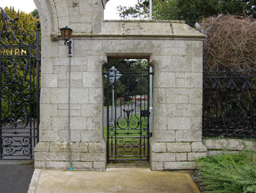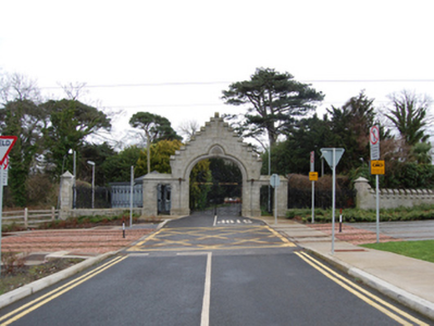 A gateway erected to designs by James Franklin Fuller (1835-1924) of Great Brunswick Street [Pearse Street], Dublin (Irish Builder and Engineer 10th July 1909, 424), forming part of a self-contained group alongside a Benjamin Woodward (1815-61)-designed gate lodge (see 60230004) with the resulting ensemble making a pleasing visual statement in Murphystown Road. The iron work supplied by J. and C. McGloughlin and Company (established 1875) of Great Brunswick Street [Pearse Street], Dublin, compares favourably with the iron work supplied by the same company for the Kildare Street screen at Leinster House (see 50100220).