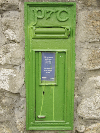 A "wall box" post box supplied by Jessop Davis (closed 1962) of Enniscorthy, County Wexford, representing an interesting example of mass-produced cast-iron work making a pleasing, if largely inconspicuous visual statement in Newtownpark Avenue with embellishments identifying the artistic potential of the composition including the Cló Gaelach or "Old Irish Lettering" defining the monogram of the Department of Posts and Telegraphs (fl. 1924-84).