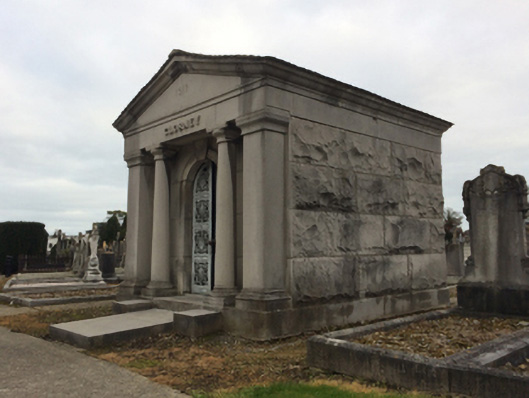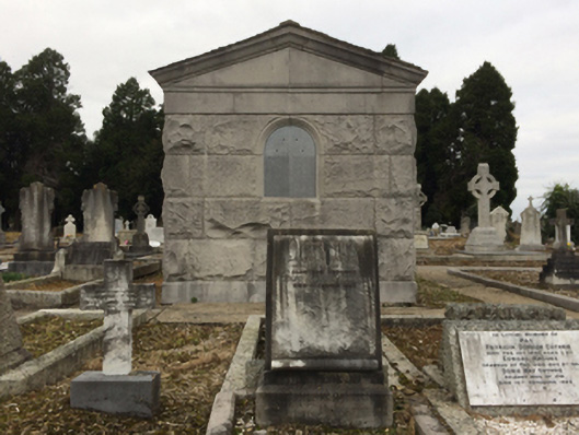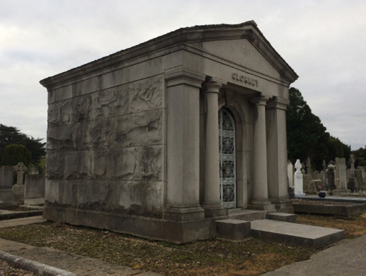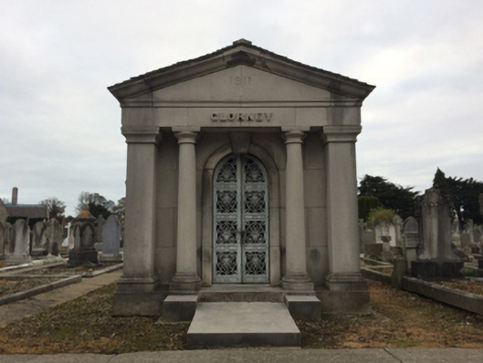 A mausoleum erected for George Glorney (1838-1911) contributing positively to the group and setting values of Deans Grange Cemetery with the architectural value of the composition suggested by such attributes as the compact rectilinear plan form; the pillared temple front centred on a restrained doorcase showing "Anthemion"-detailed iron work; the robust rock faced surface finish; and the pedimented roofline. NOTE: The burial place of Lieutenant Edward Ernest Glorney (1887-1916) of the Royal Flying Corps.