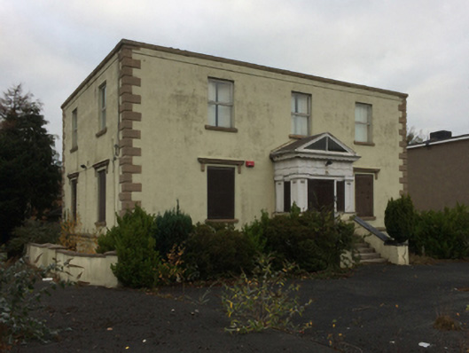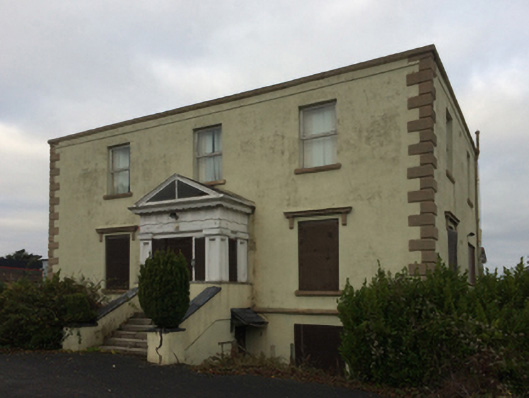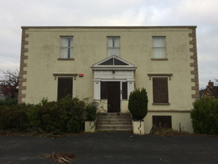 Detached three-bay (two-bay deep) two-storey over part raised basement house, extant 1837, on a cruciform plan centred on single-bay single-storey projecting porch to ground floor; single-bay (single-bay deep) full-height central return (north). Renovated, 2002, to accommodate proposed alternative use. Now disused. Hipped slate roof on a quadrangular plan behind parapet with clay ridge tiles, rendered chimney stacks having shallow capping supporting terracotta pots, and concealed rainwater goods retaining cast-iron octagonal or ogee hoppers and downpipes. Replacement cement rendered walls on cut-granite chamfered cushion course on cement rendered base with rusticated cut-granite quoins to corners supporting parapet having cut-granite coping; rendered, ruled and lined surface finish to rear (north) elevation. Central door opening into house approached by flight of six cut-granite steps. Square-headed window openings (ground floor) with cut-granite sills, and concealed dressings with "Cyma Recta"- or "Cyma Reversa"-detailed hood mouldings on fluted consoles framing replacement uPVC casement windows behind steel protective panels. Square-headed window openings (first floor) with cut-granite sills, and concealed dressings framing replacement uPVC casement windows. Interior including (ground floor): central hall retaining carved timber surrounds to door openings framing timber panelled doors; and carved timber surrounds to door openings to remainder framing timber panelled doors with carved timber surrounds to window openings framing timber panelled shutters. Set in own grounds.