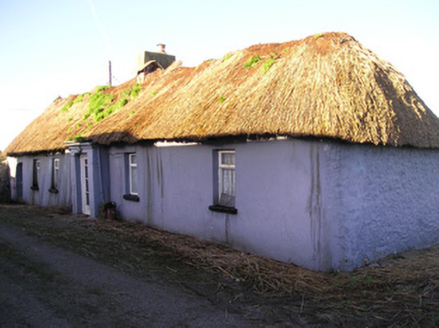 Detached four-bay single-storey direct entry thatched house, built c. 1800, having single-bay single-storey lean-to to north. Hipped thatched roof with red brick chimneystack. Roughcast rendered wal...